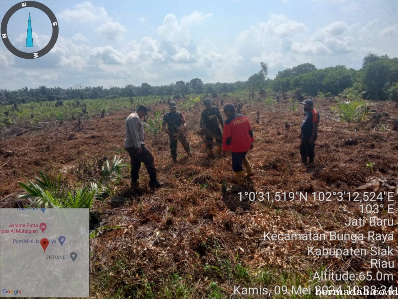 BERMADAH.CO.ID, SIAK - Kegiatan Penanggulangan Karhutla di lintas Wilayah Koramil 06/PWK Sabak Auh pada hari Kamis tanggal 9 Mei 2024, Proses Pemadaman, Proses Pendinginan Nihil.