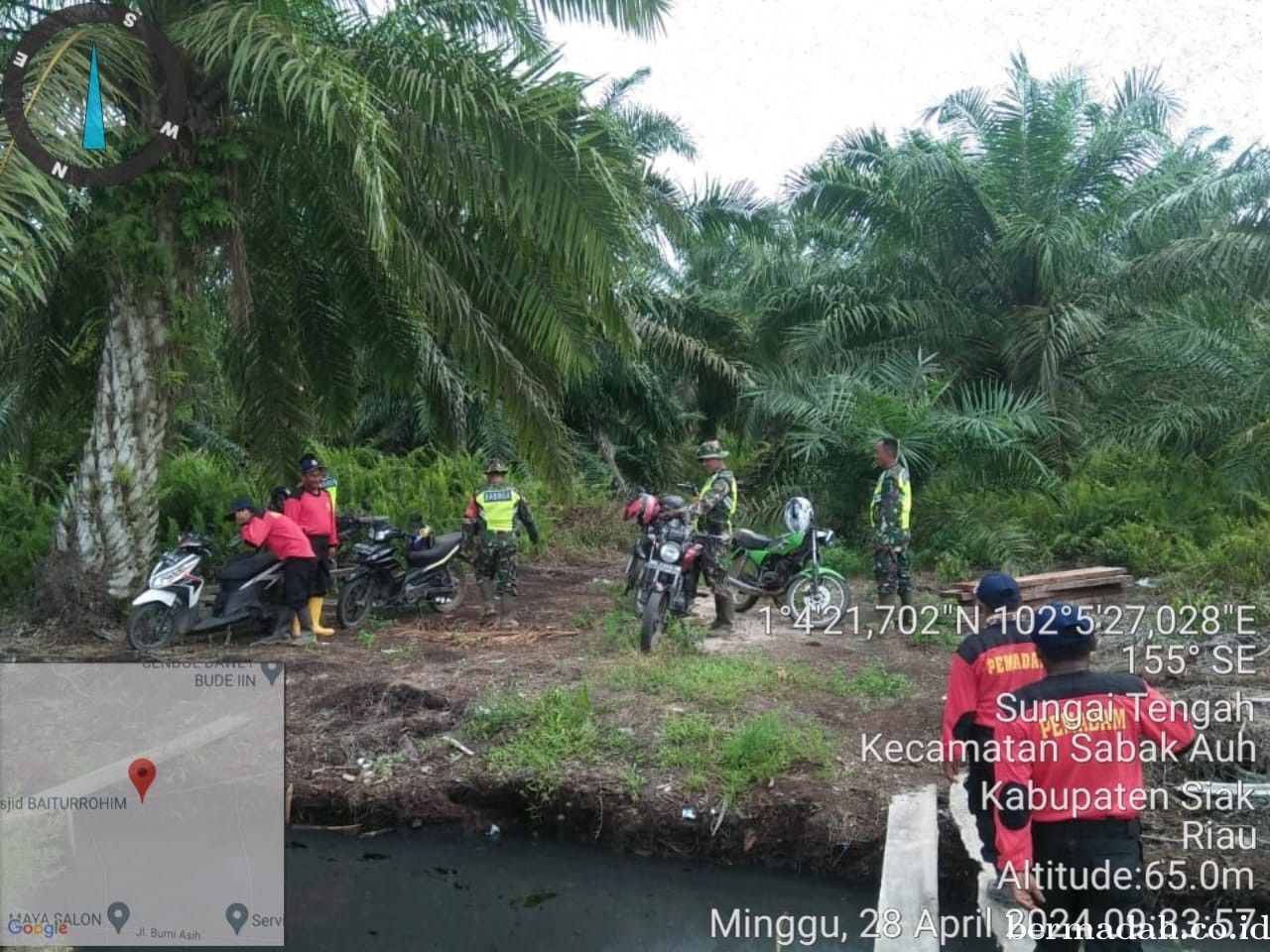 Serka Yuswan Melaksanakan Patroli Karhutla di RT/RW 01/03 Kampung Sungai Tengah Kec. Sabak? Auh Kab. Siak Prov. Riau. Titik Koordinat : 1°4'21,667"N 102°5'26,988"E.