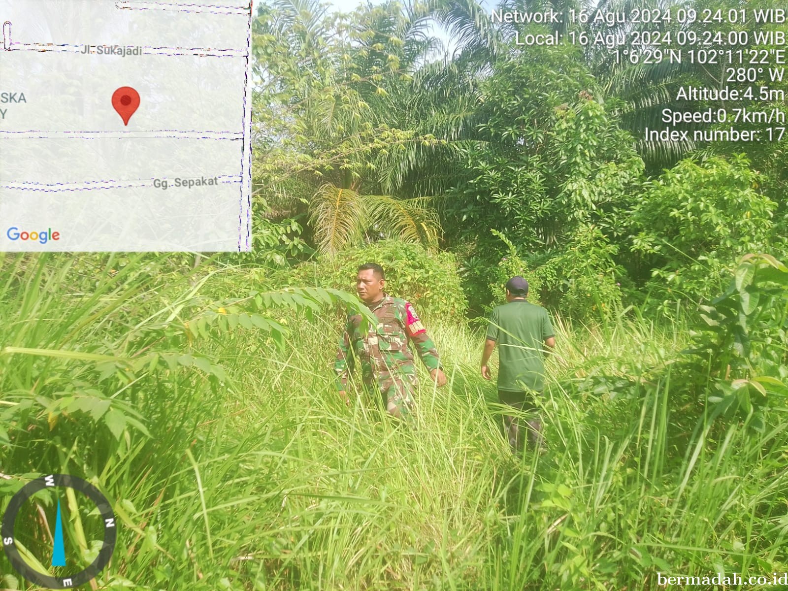 Babinsa Koramil 02/Sungai Apit, Kopda Mugi Melaksanakan Patroli Karhutla di Kampung Teluk Mesjid RT 01 RW 02 Kec.Sungai Apit, Kab. Siak Titik Koordinat : 1?34''65" N 102°45'76"E.