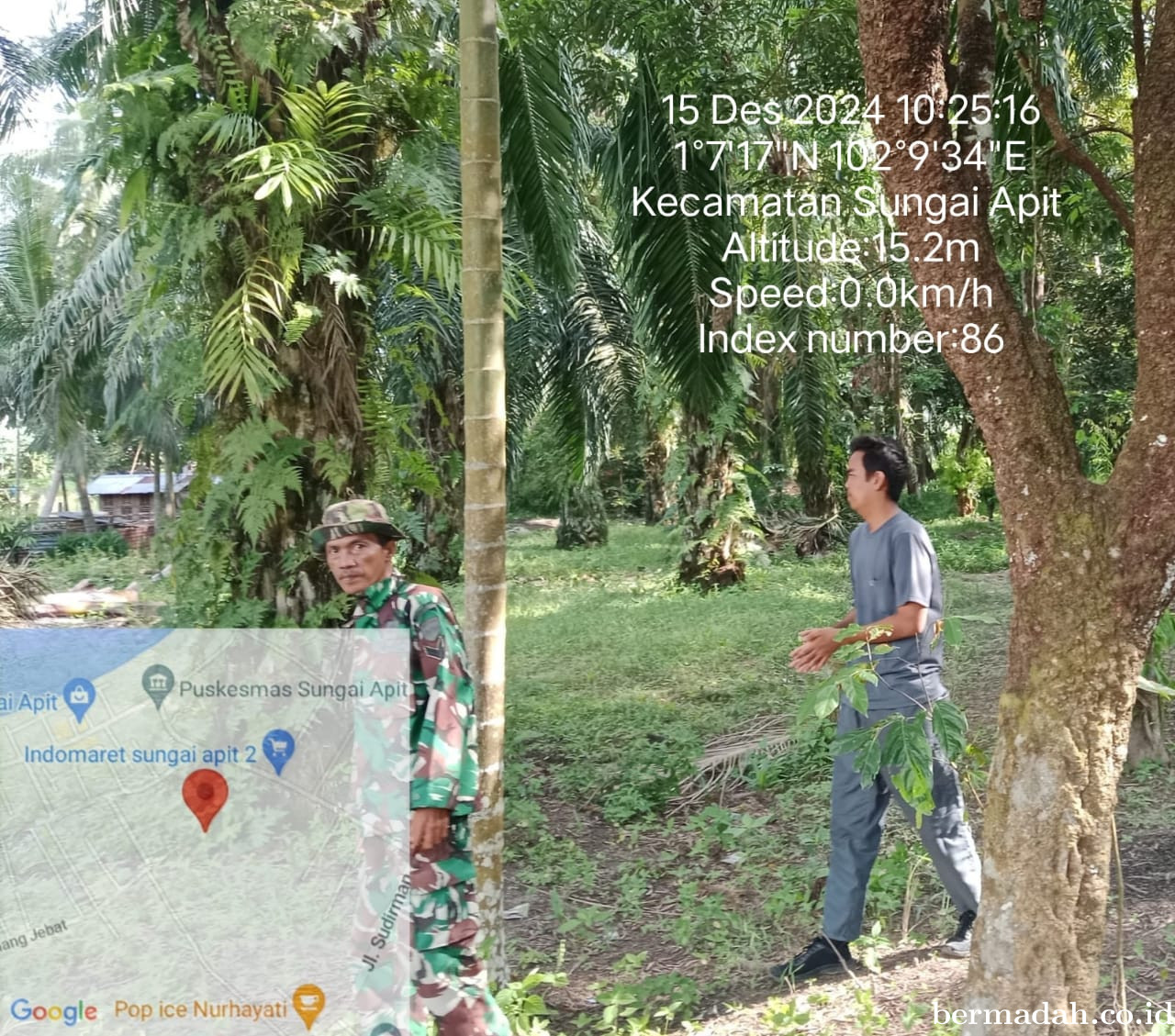 Babinsa Koramil 02/SA, Sertu Dedi S Melaksanakan Patroli Karhutla di Kampung Parit 1/2 RT 02/RW 02 Kec.Sungai Apit Kab. Siak Titik Koordinat : 1°7'17"N 102°9'34"E.