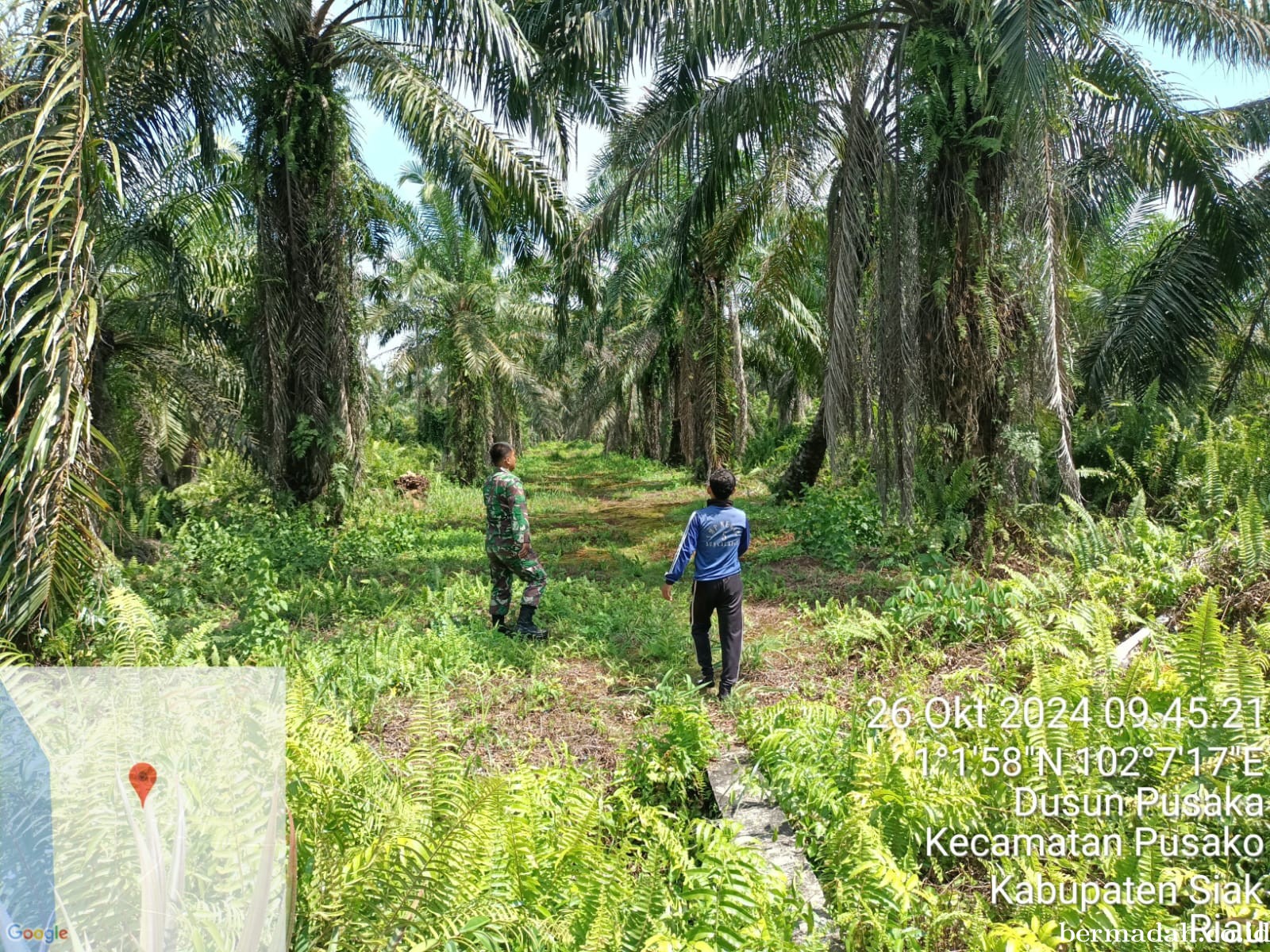 Babinsa Koramil 02/Sungai apit, Koptu Franky Melaksanakan Patroli Karhutla di Kampung Dusun Pusaka, RT 01/RW 02 Kec. Pusaka, Kab. Siak. Titik Koordinat : 1?1'58" N 102°7'16"E.